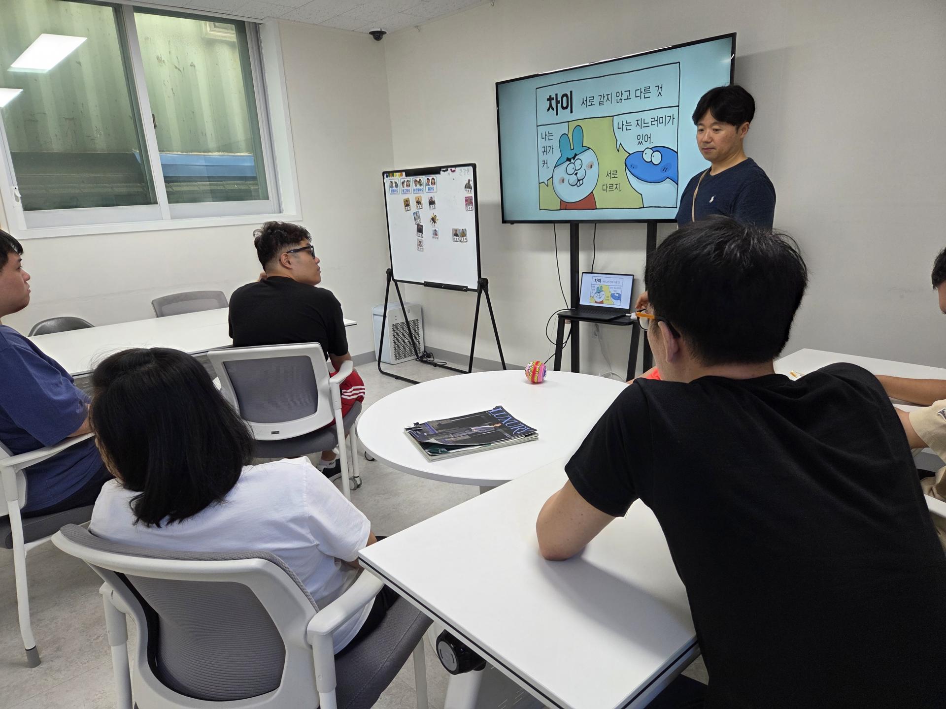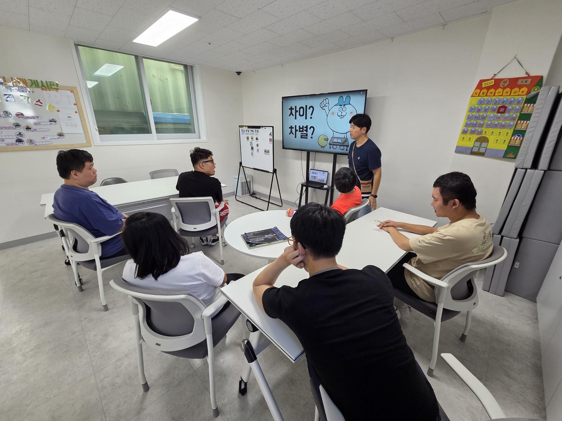 차별예방교육 모두가 존중받는 사회를 만들기 위해 차별이 무엇인지, 그리고 차별을 막기 위해 우리가 어떻게 행동해야 하는지 함께 생각해보았습니다. 서로의 다름을 인정하고 존중하는 따뜻한 마음을 나누는 시간이 되었답니다. 🤝💙