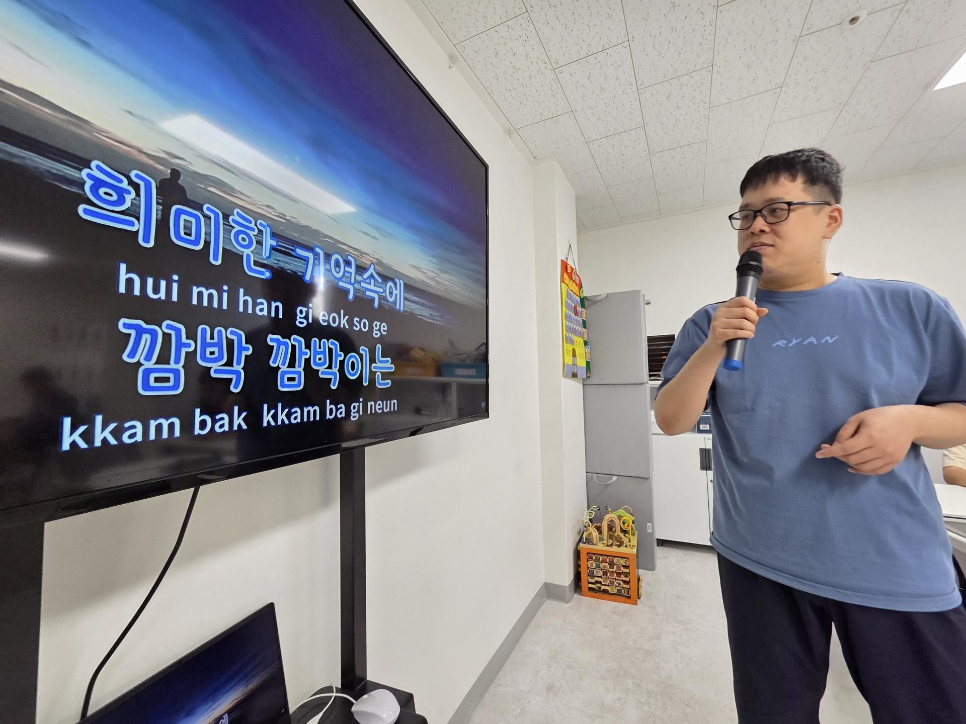 이용인들이 직접 무대에 올라가 자신 있는 노래를 부르며 즐거운 시간을 보냈어요. 🎤